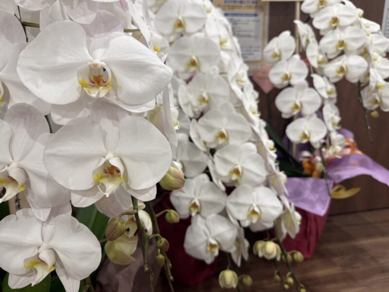 院内が華やかな胡蝶蘭でいっぱいになり、